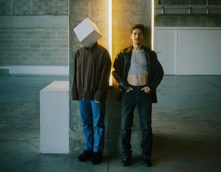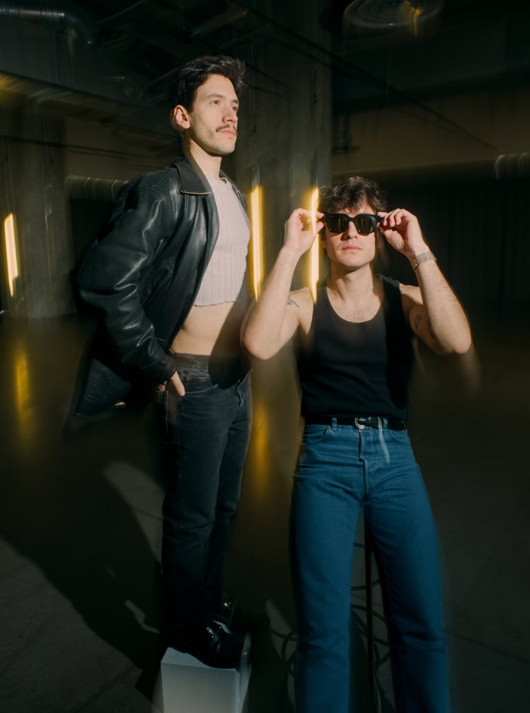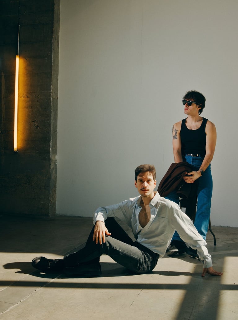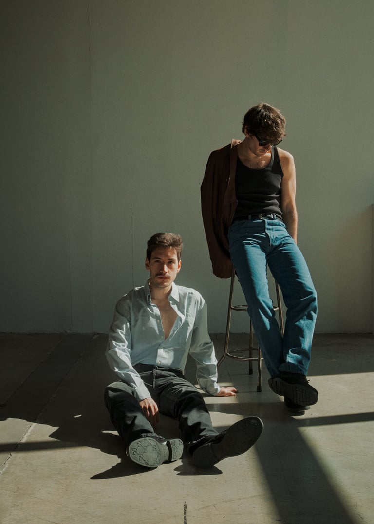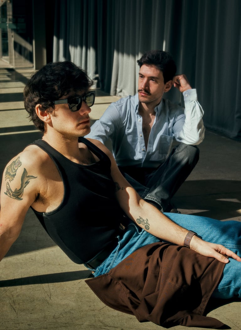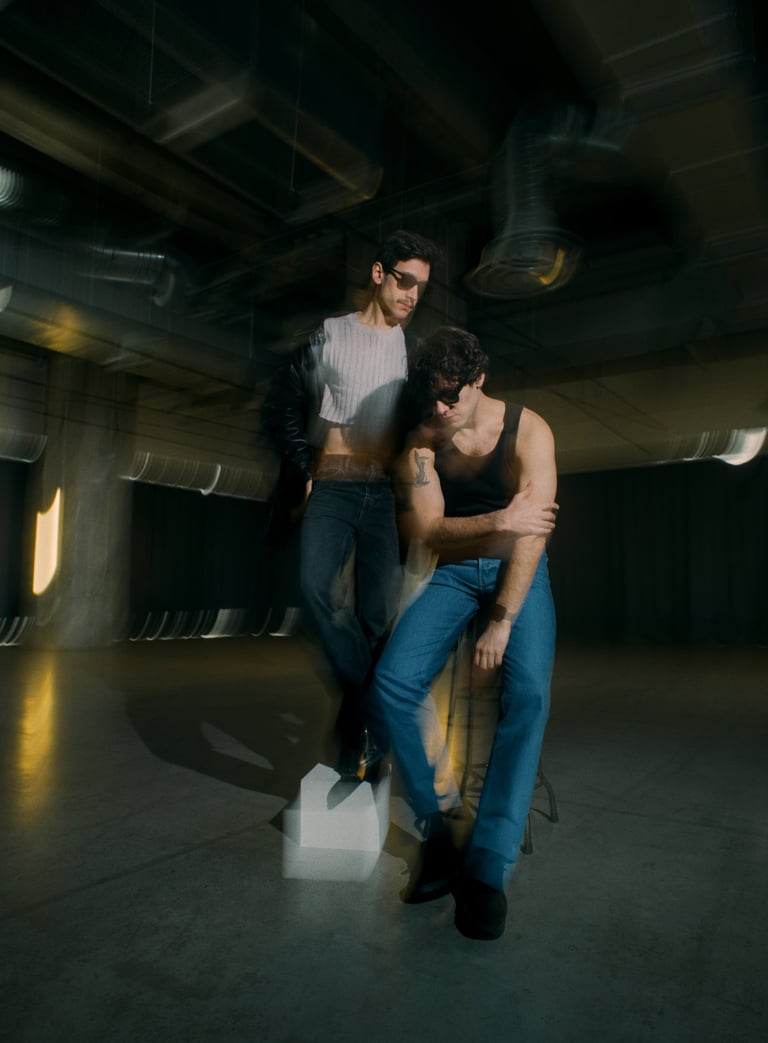 We shot this in the early Spring sun at the Magasins Généraux (Pantin). The twins wanted a very contemporary and graphic environment. We played with what we found there and a small flash.